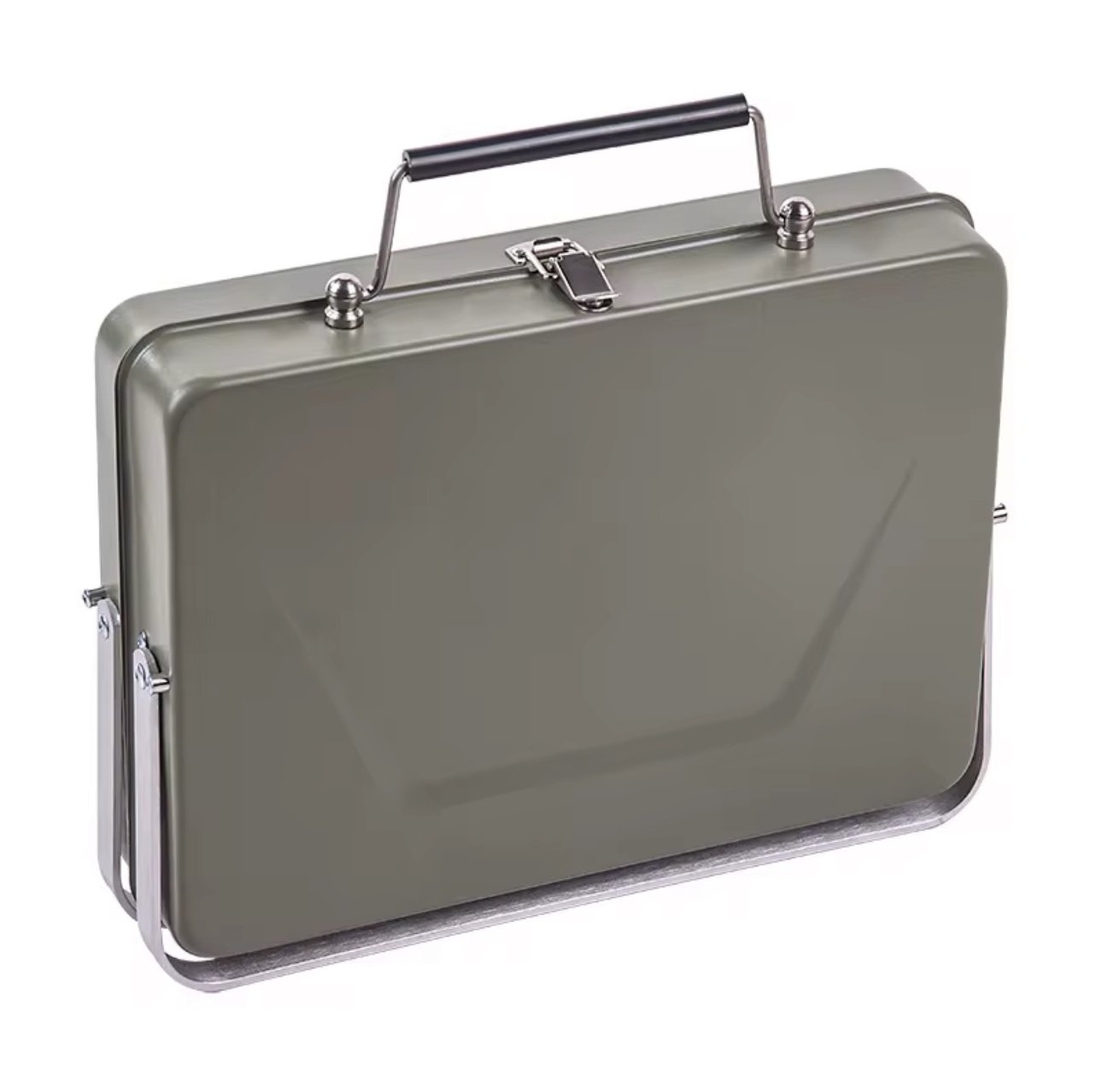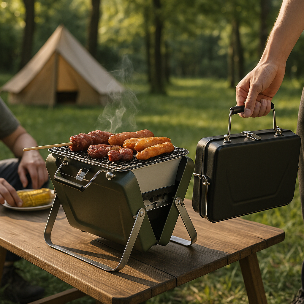 Emportez l’art du barbecue partout avec vous grâce à ce mini grill compact et pliant. Conçu pour être aussi pratique qu’élégant, il se transforme en quelques secondes d’une valisette discrète et légère en un véritable barbecue prêt à l’emploi. Disponible en deux couleurs : noir ou vert.